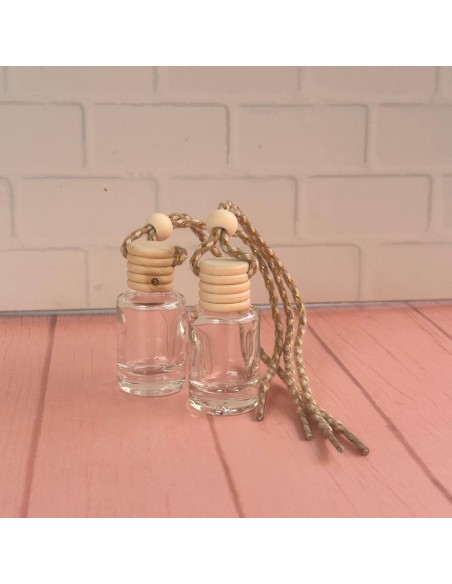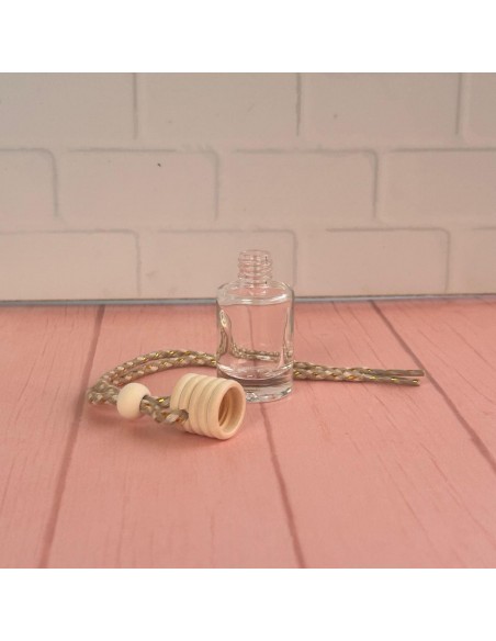 Frasco de vidrio con tapa de bambu para tus difusores de auto.