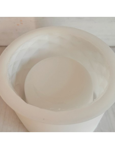 Molde de silicona para maceta redonda con textura interior. Puedes confeccionarla en cemento para plantas o como contenedor de velas