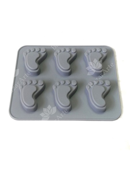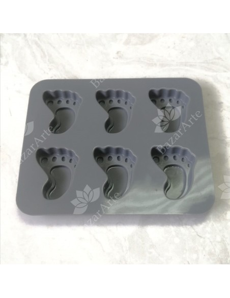 Molde de silicona de 6 jaboncitos en forma de pie de bebe, de 30 gr, cada uno