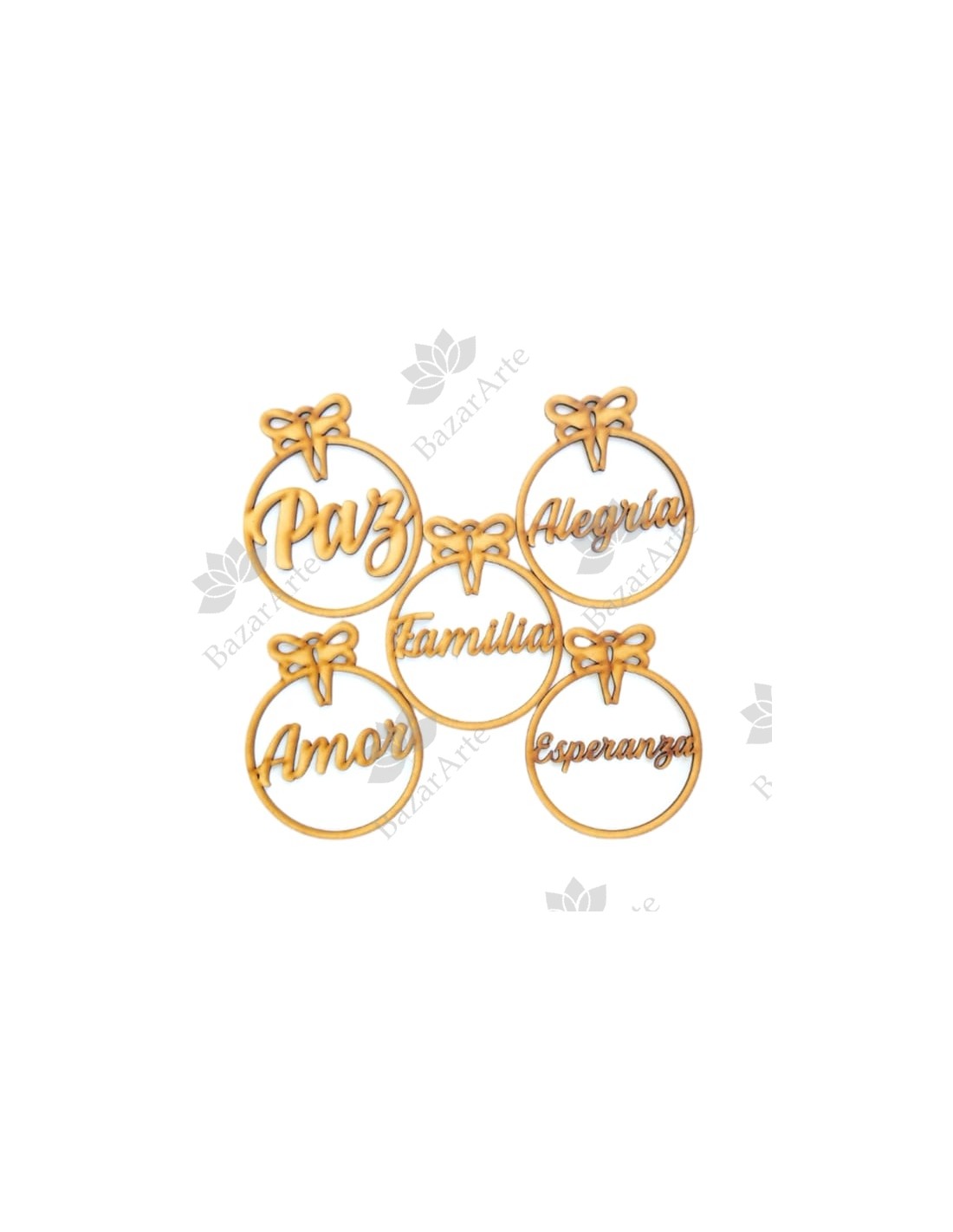 Decoraciones para tu árbol de navidad, de MDF de 3mm, de 10cm de diámetro.