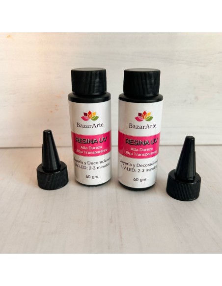 Resina UV 60 gramos ultra transparente, ideal para joyería y arte. Este formato incluye aplicador