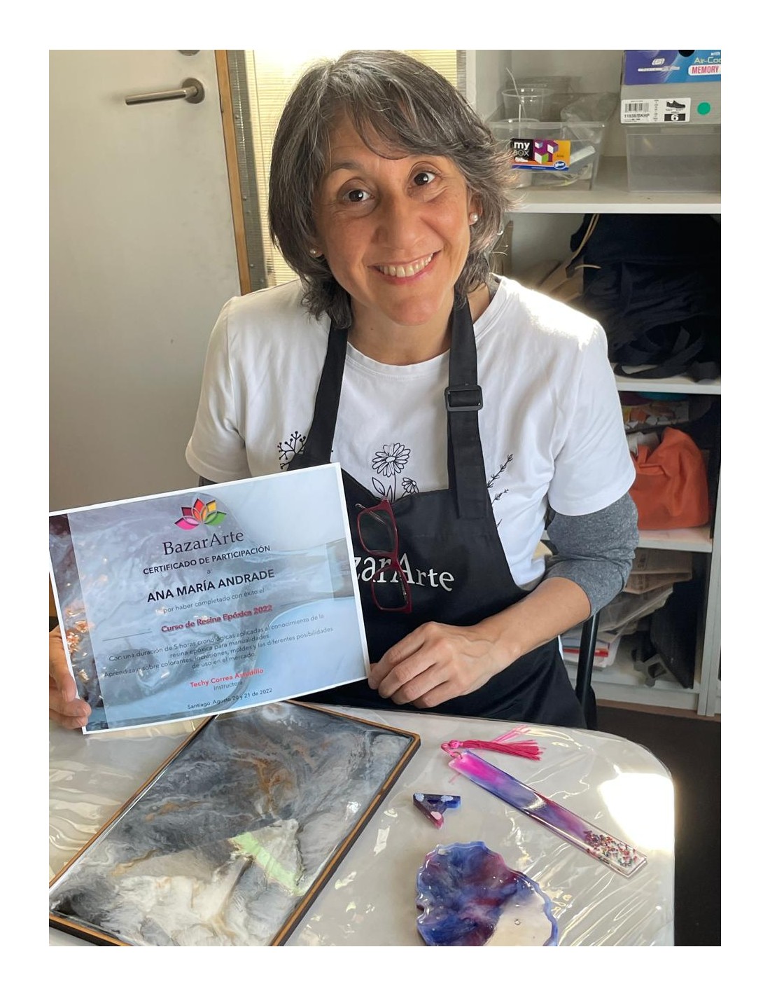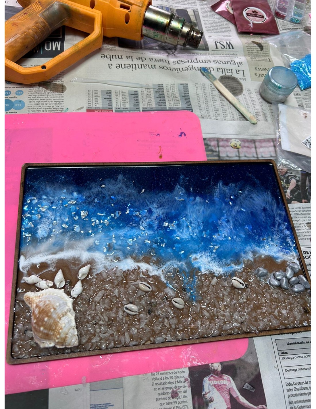 Curso de resina Epóxica técnicas mixtas, de 2 sesiones, totalizando 4:30 horas de clases.